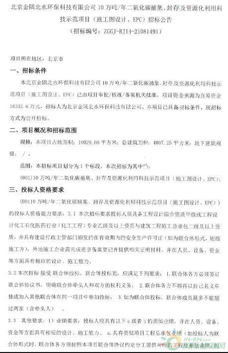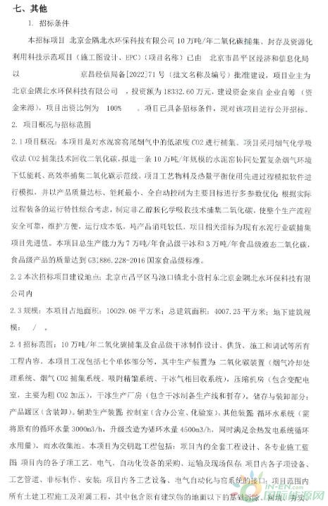 招标 | 1.8亿!北京一水泥窑窑尾烟气CCUS项目招标