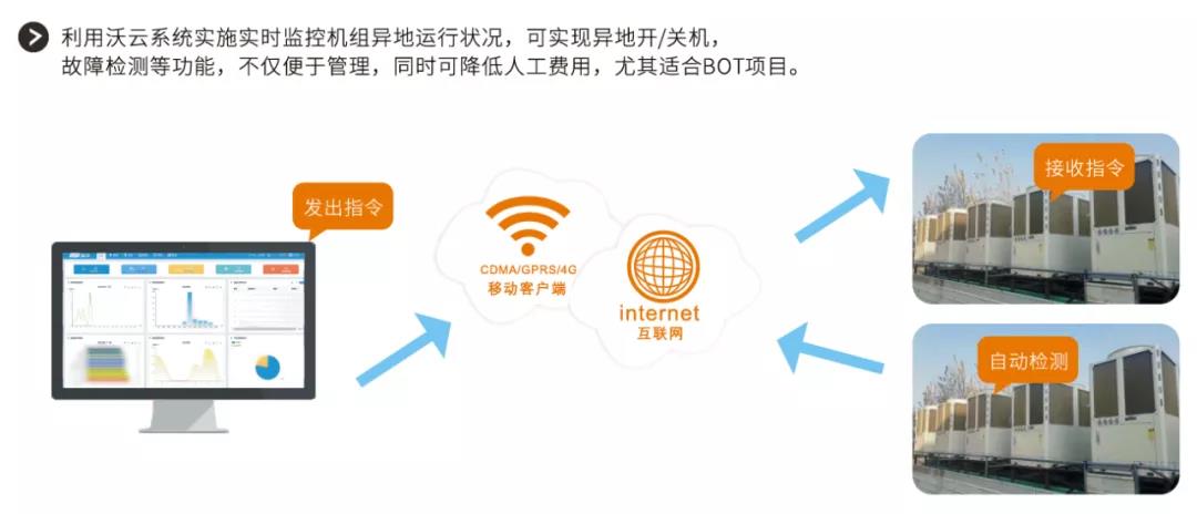 整套冷暖、热水机组均接入沃云系统,提供高效率、高品质服务,如下: