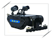 管道清洗机器人,高20cm,宽30cm,手动升降臂,可通过更换不同大小的毛刷清洗不同管径的风管;同时,通过更换升降臂前端传动机构,改变毛刷旋转方式,可以清洗方形管道和圆形管道;毛刷通过气动马达带动,气动马达的好处是体积小,重量轻,功率大,并且可以长时间工作。机器人载有广角摄像头,信号经电缆传至监视器,在管外可以监控整个清洗过程,并操纵机器人避开障碍物。升降臂连同毛刷作为一个模块可以整体拆卸下来,这样清洗机器人便成为一部灵活的勘测机器人,配备不同的探头,可以测量管内风速、温度、湿度、粉尘浓度等参数。机器人通过控制箱远程控制,改变行进速度、方向、毛刷转速、灯光亮度,履带式行进机构能够保障轻松越过障碍物,不致倾斜。
