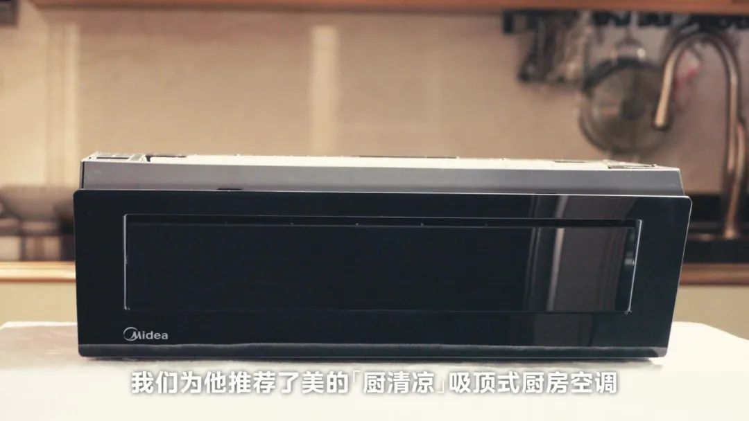 针对魏先生的问题和他的厨房环境,我们为他推荐了美的「厨清凉」吸顶式厨房空调。