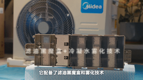 此外,考虑到厨房油烟问题,它的外机同样与常规挂机空调不同,配置了滤油黑魔盒和雾化技术,可以过滤净化冷凝水中的油脂和有机酸后将其雾化,保证外机不滴水,所以它的外机装在哪里都行。